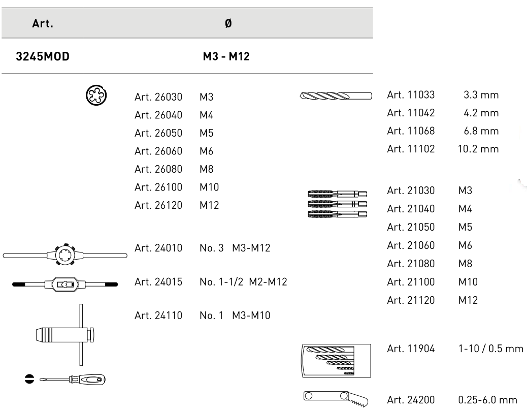 – Jeu de forets de 3,3 – 10,2 mm