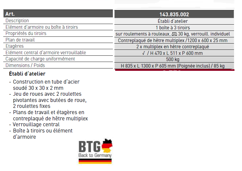 Etabli d’atelier à roulettes 3 tiroirs et 2 étagères – KRAFTWERK