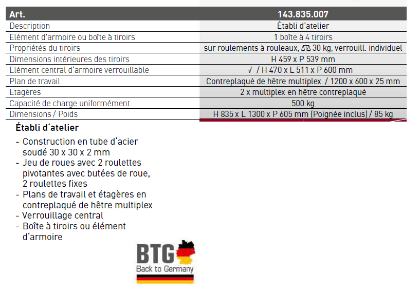 Etabli d’atelier à roulettes 4 tiroirs et 2 étagères – KRAFTWERK