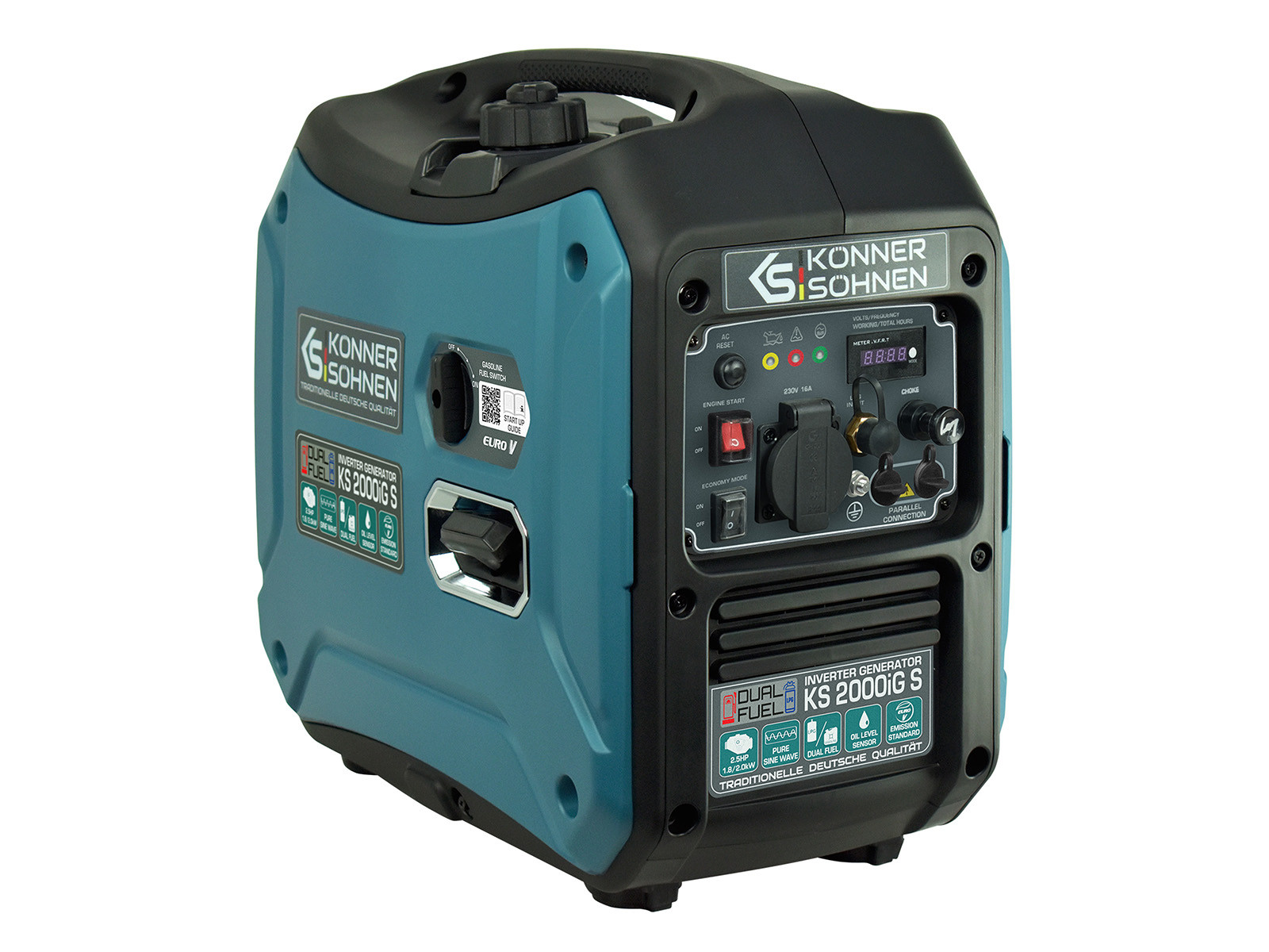 Groupe électrogène KS-2000iG-S – Essence et Gaz – 2 kW – INVERTER – Monophasé 230V – Démarrage manuel – Könner & Söhnen