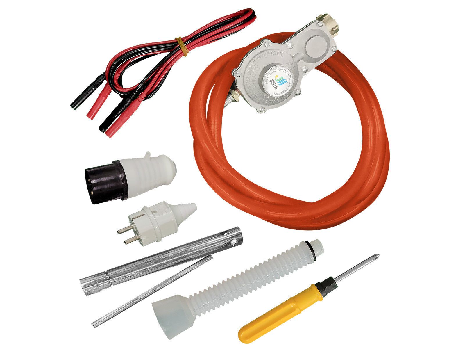 Le générateur est complété par des accessoires supplémentaires: clé à bougie, entonnoir pour un remplissage facile de l?huile moteur, câble de connexion parallèle, tuyau avec réducteur, fiche Schuko 16 A, tournevis PH2 6.0 mm, fiche 32 A CEE.
