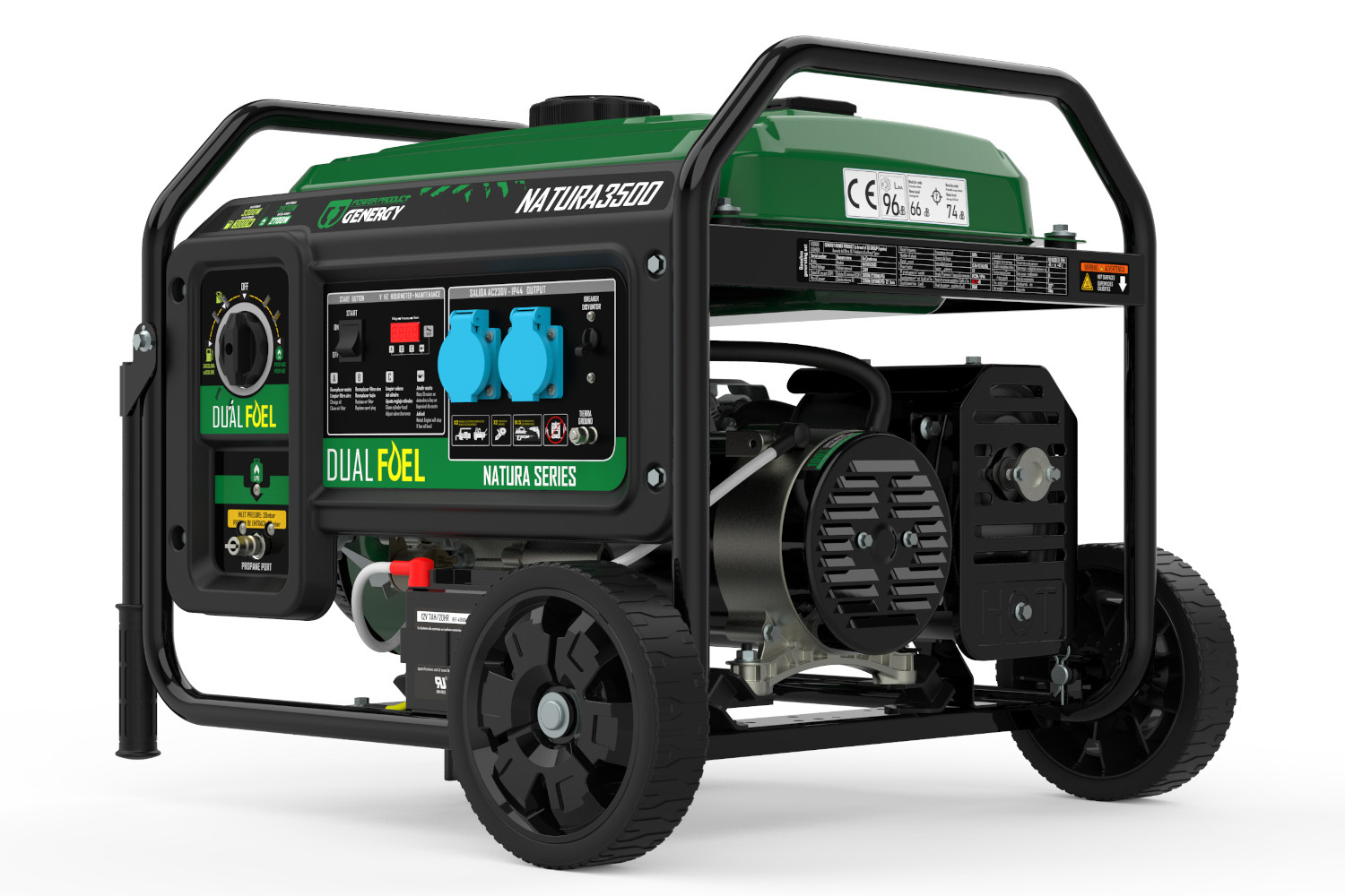 Groupe électrogène NATURA 3500 – Essence et Gaz – 3.3 kW 230V – SVR/AVR – Démarrage électrique – GENERGY