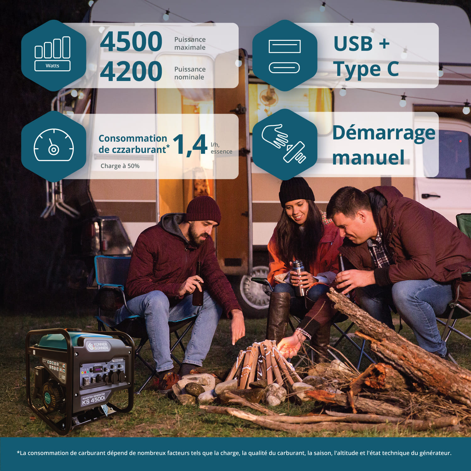 Groupe électrogène onduleur KS-4500i- 4.5 kW – INVERTER – essence – 230V – Démarrage Manuel – Konner & Sohnen