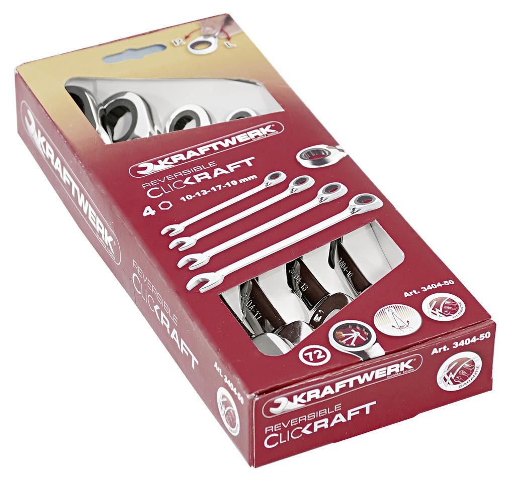 Jeu de 4 clés combinées réversible CLICKRAFT 10-19 mm – KRAFTWERK