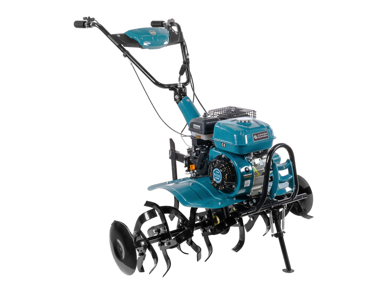 Motoculteurs à essence de TM «Könner & Söhnen» avec entraînement par courroie, capacité de 7 CV conviennent au traitement de tous types de sols, de l’argile meuble à l’argile vierge. Ce sont des unités agricoles pratiques, fiables et multifonctionnelles pour remplir plusieurs tâches: travail de tout type sol, plantation de cultures, récolte.