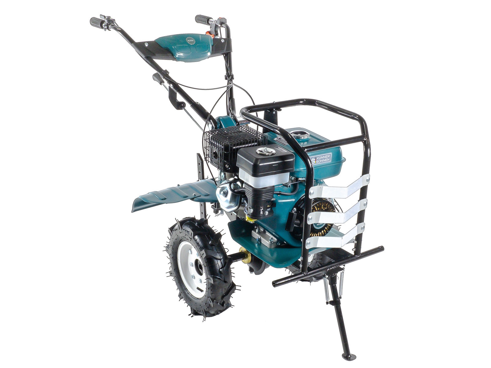 Il est également possible d’installer une remorque pour le transport de marchandises. La largeur de traitement de ce modèle atteint 108 cm! Les boites de vitesses à réducteur rendent les motoculteurs plus fiables, durables et prêts à supporter de lourdes charges. Les puissants moteurs Könner & Söhnen peuvent remplir des tâches de toute complexité et répondent à toutes les normes de qualité européennes, y compris les dernières normes d’émissions d’échappement EURO-V.