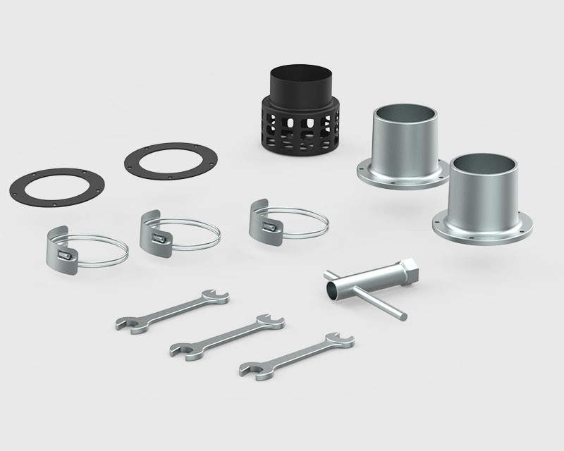 • Corps hydraulique, turbine et volutes en aluminium. Volute en fonte. Joint d’étanchéité en céramique.