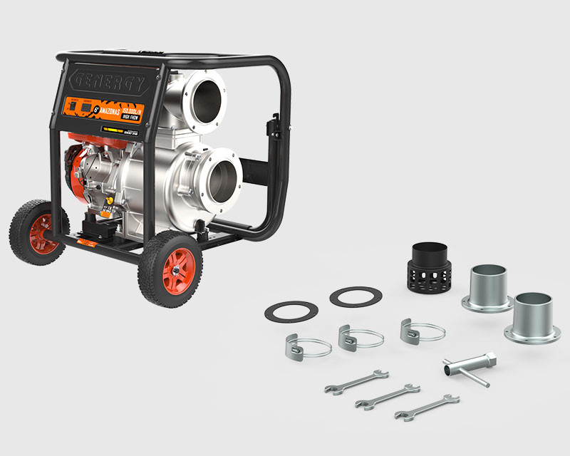 Motopompe AMAZONAS Essence – Eaux claires/moyennement chargées – 150000 L/h – 150 m3/h – Ø 6″ 150 mm – GENERGY