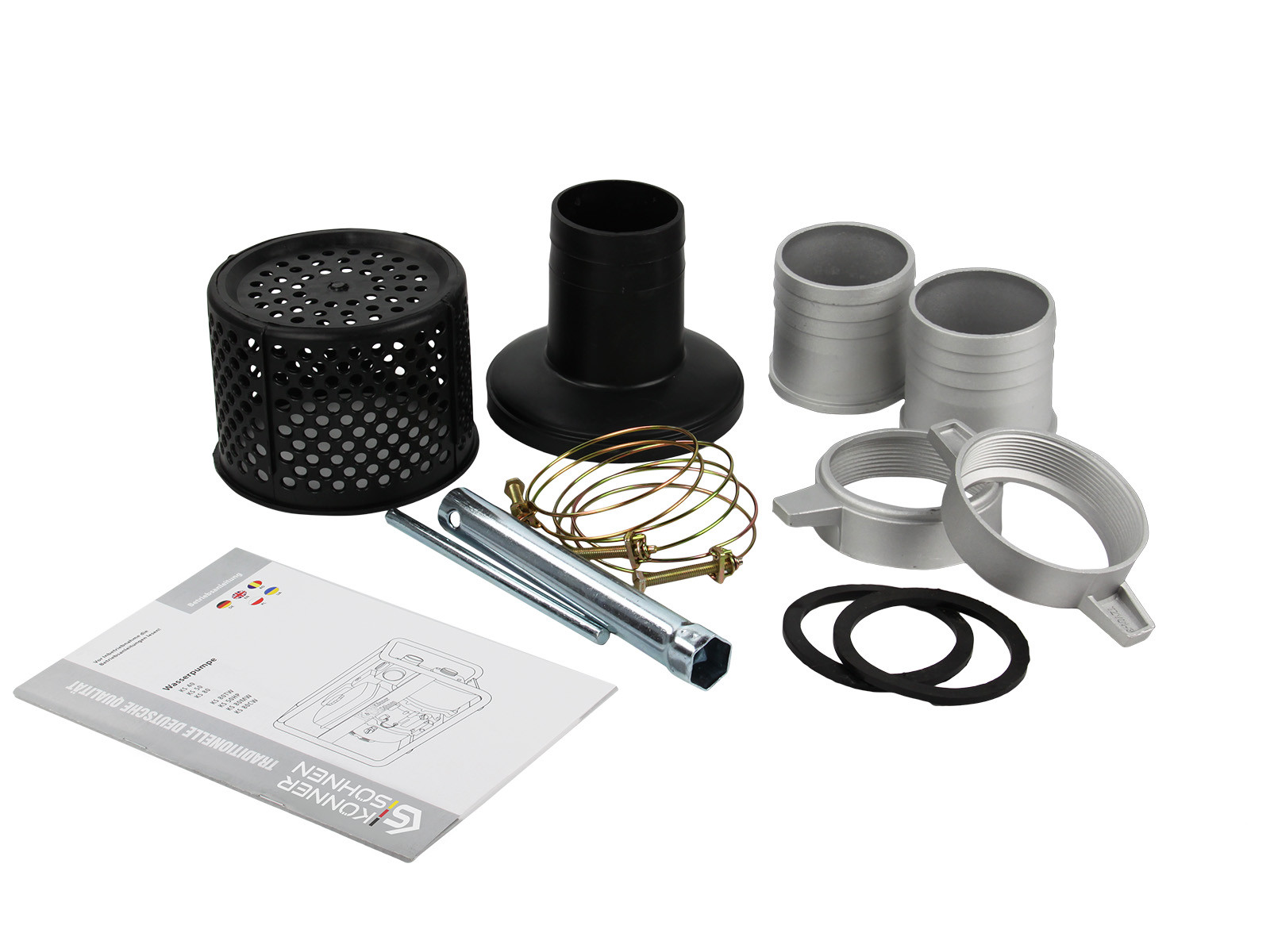 Les motopompes sont équipées d?accessoires supplémentaires: filtre à eau, jeu de raccords de tuyauterie, clé à bougie, jeu de raccordement d?un tuyau.