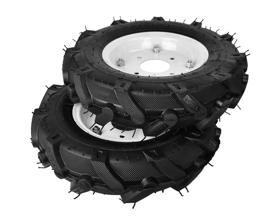 Les roues pneumatiques modernes pour les motoculteurs à essence ont une bande de roulement élevée et assurent une maniabilité et une traction améliorées aussi bien au sol que sur d’autres types de surfaces.