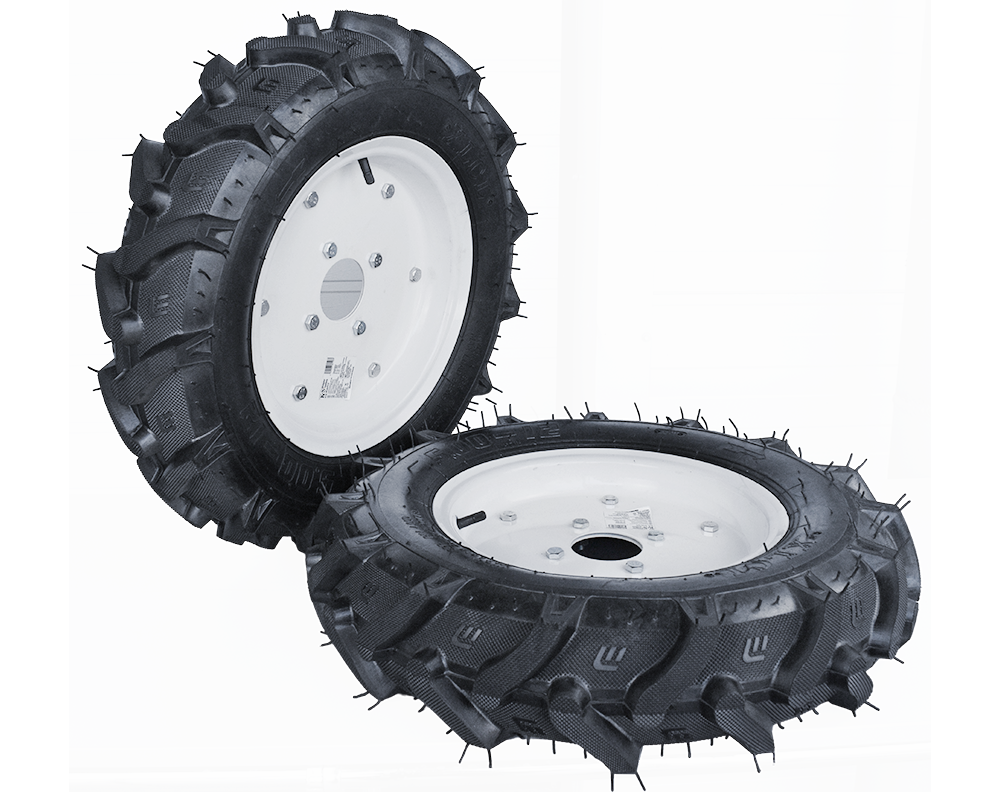 Les roues pneumatiques modernes pour les motoculteurs à essence ont une bande de roulement élevée et assurent une maniabilité et une traction améliorées aussi bien au sol que sur d’autres types de surfaces.