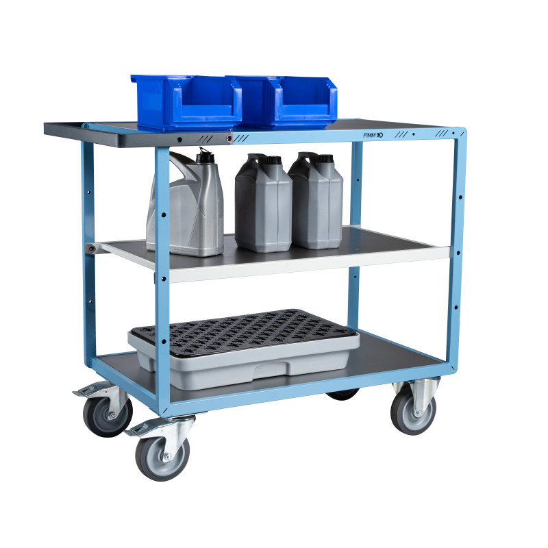 Servante mécano-soudée 3 plateaux tôle galva – 1000 x 600 mm – roues TPE – Charge utile 400 kg – FIMM