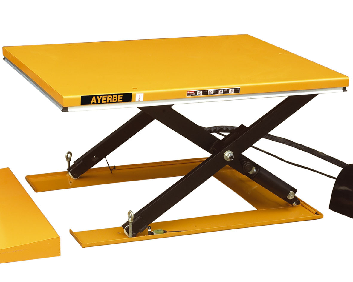 Table élévatrice hydraulique AY-2000-EMH – Profil bas + rampe – Electrique 400V – Charge utile 2000 kg – AYERBE