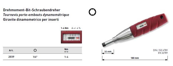 Tournevis porte-embouts dynamométrique 1/’4″ – Nm 1-4 – KRAFTWERK